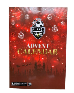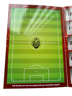 The SoccerStarz Advent Calendar contained a game pitch which was perforated onto the inside cover, with 25 perforated windows, including a special window to be opened on Xmas Day.